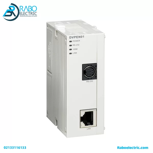 ماژول شبکه اترنت دلتا DVPEN01-SL ارتباط بین PLC های سری Slim دلتا و شبکه Ethernet را برقرار میکند. این ماژول انتقال دادهها را با سرعت بالا انجام میدهد و کنترل تجهیزات در شبکه را سادهتر میکند.