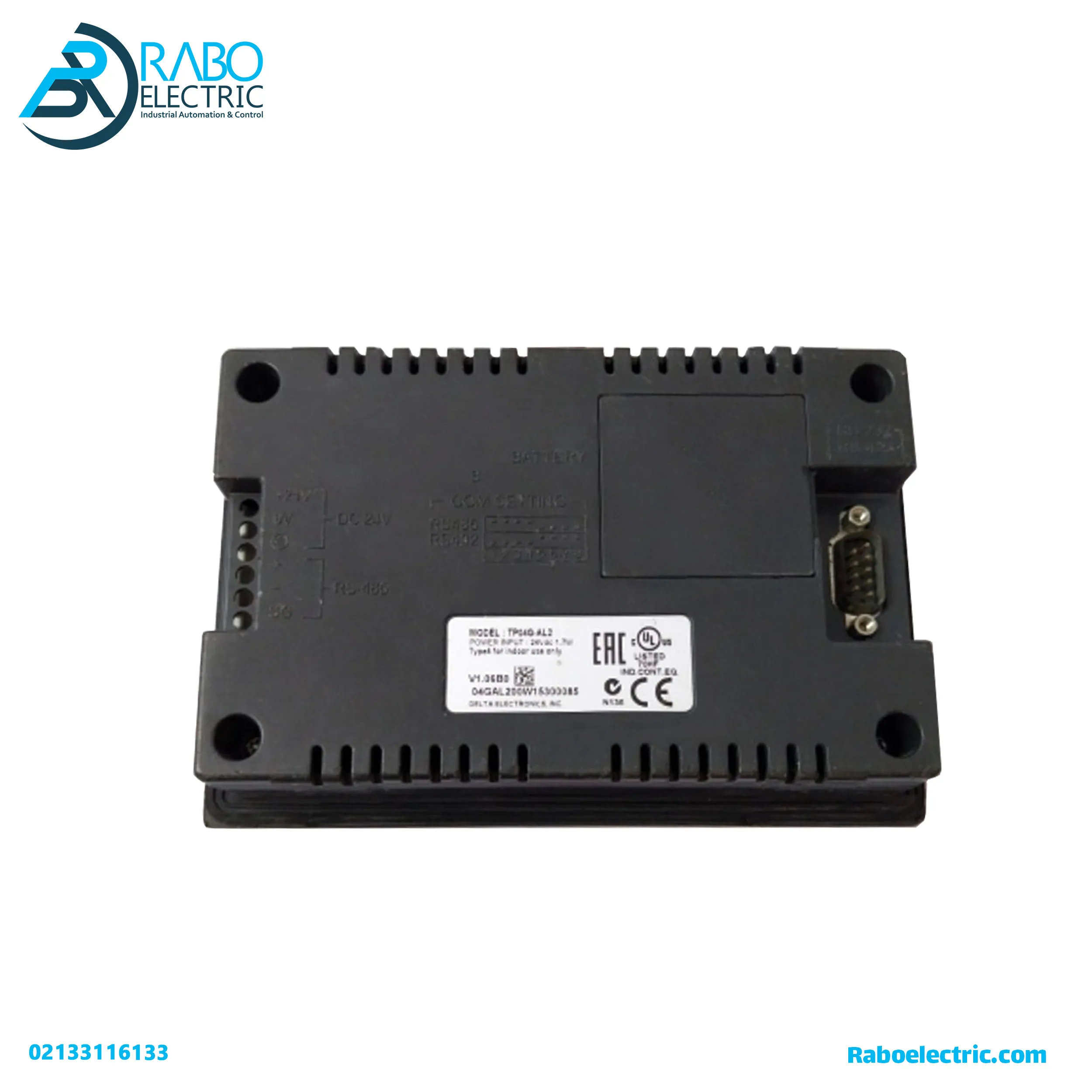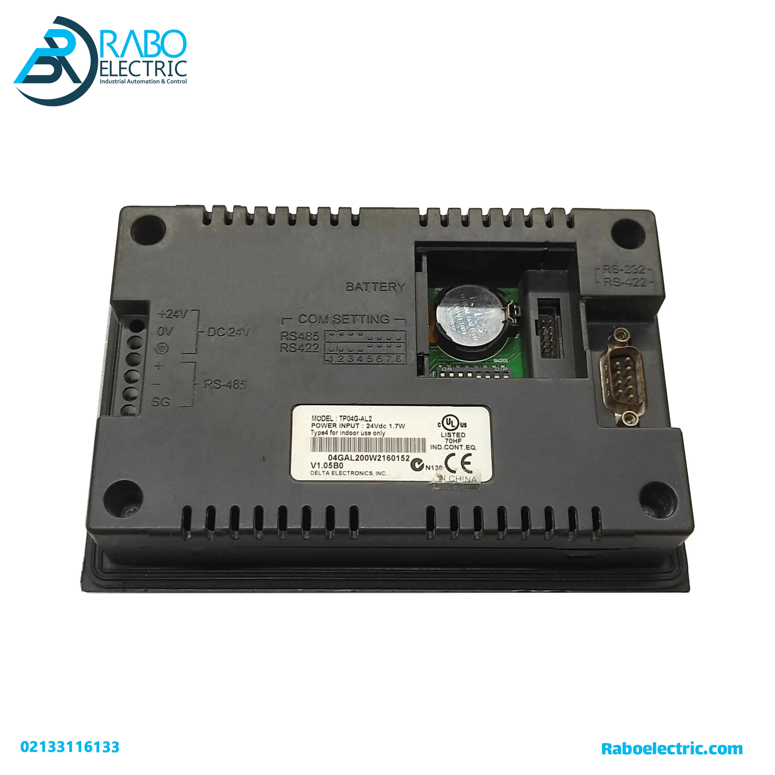 از نظر ارتباطی، مدل TP04G-AL2 امکانات کاملی دارد. این دستگاه به پورتهای COM1 (RS-232) ، COM2 (RS422 / RS-485)، مجهز است. حافظه برنامه TP04G-AL2 شامل 256KB flash memory است. این مدل به خاطر نداشتن امکان صفحه لمسی دارای 2 دکمه جهت و 6 دکمه عملکری، 1 دکمه Enter و 1 دکمه ESC است. ابعاد بیرونی 163.6×108.6×37 mm و وزنی حدود 270 g این محصول را برای فضاهایی با حجم کم. این مدل دارای خنک کنندگی طبیعی است . این مدل با قیمتی مناسب میتواند کیفیتی بالا را ارائه دهد. شما میتوانید برای مشاوره و خرید این محصول با ما در تماس باشید. رابوالکتریک نماینده اصلی محصولات دلتا در استان تهران و البرز است.