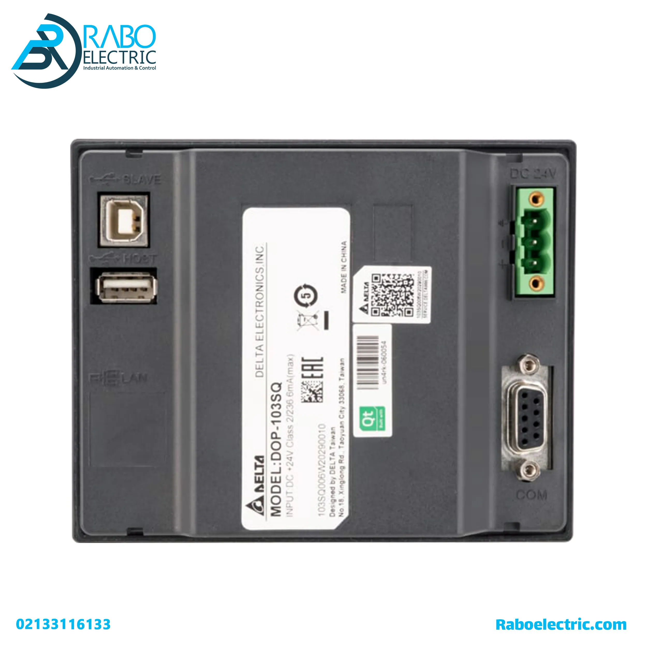 نمایشگر لمسی (HMI) دلتا 4.3 اینچ DOP-103SQ از برند Delta یک رابط کاربری صنعتی قدرتمند و جمعوجور است که برای کنترل فرآیندها و تجهیزات در خطوط تولید طراحی شده است. از این رو تجربه کاربری سریع و دقیق را به کاربر ارائه میدهد. این مدل دارای صفحهنمایش4.3 اینچ با جنس صفحه نمایش TFT LCD و وضوح 480×272 pixels است و تصاویر را با65,535 رنگ نمایش میدهد. نور پسزمینه LED با طول عمر بیش از 20.000 ساعت دوام بالای دستگاه را تضمین میکند. نرمافزار برنامهنویسی DOPSoft امکان طراحی سریع و ساده رابط کاربری را فراهم میکند.